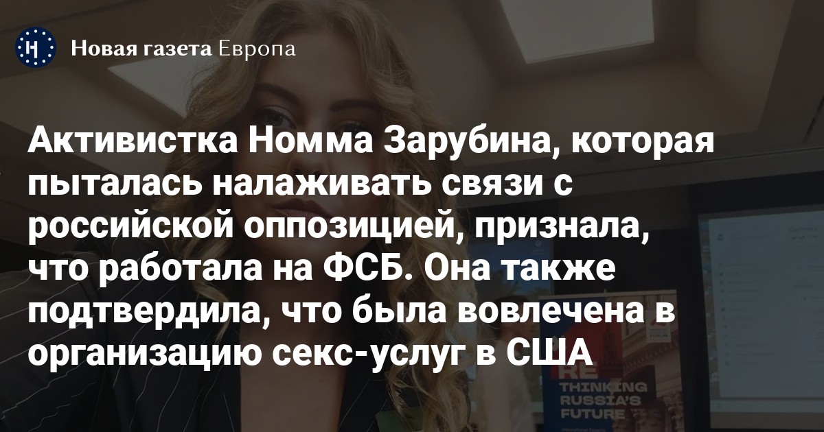 Номма Зарубина — россиянка из Томска. Она переехала в США в 2016 году после окончания РАНХиГС. В поле зрения американских спецслужб она попала в 2022 году из-за ее тесных контактов с другой американкой российского происхождения Еленой Брэнсон.