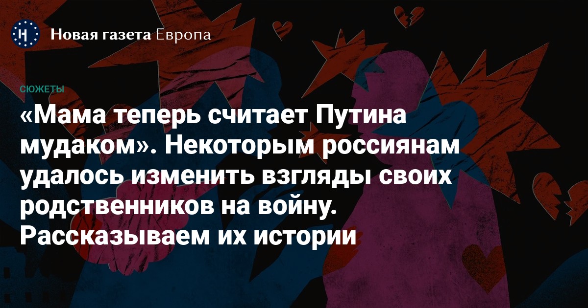Вторжение России в Украину для многих россиян стало причиной конфликтов и даже разрыва отношений с самыми близкими. Кто-то так и не смог восстановить отношения. Журналистка «Новой-Европа» поговорила с россиянами, которым в конце концов всё же удалось изменить взгляды своих родственников на войну. Все имена в тексте изменены по соображениям безопасности.