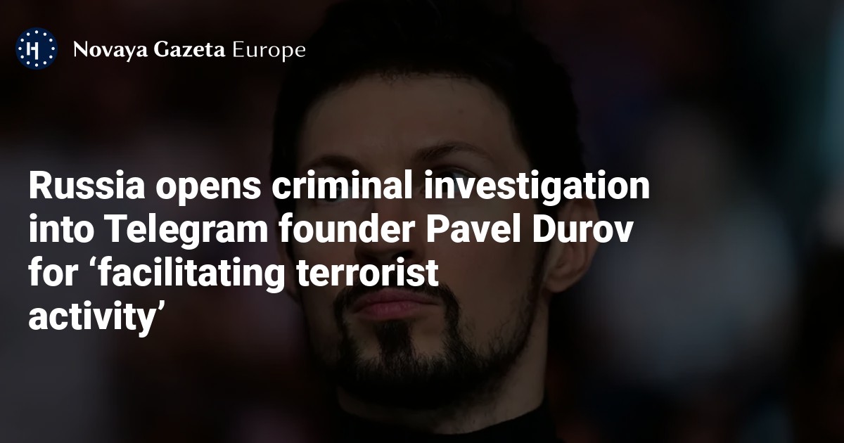 The Russian authorities have opened a criminal investigation into Telegram founder and CEO Pavel Durov for “facilitating terrorist activity” amid the Kremlin’s continued crackdown on foreign-owned messaging services, Russian state-affiliated news outlets reported on Monday.