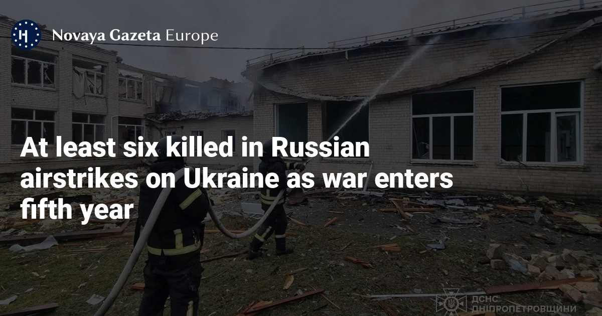 At least six people were killed and seven more were injured in Russian airstrikes on two regions of Ukraine on Tuesday evening as Russia continued its relentless bombardment of its neighbour on the fourth anniversary of its invasion.