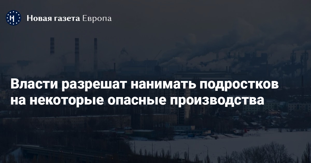 На фоне дефицита рабочей силы власти России намерены смягчить ограничения для трудоустройства несовершеннолетних на отдельных производствах, которые «когда-то давно» были признаны опасными. Об этом пишет ТАСС.