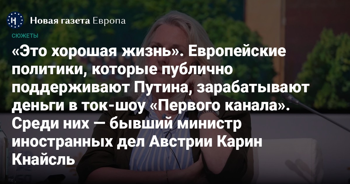 «Для меня понятно, что разжигатели войны — это политики в Брюсселе, а не кто-то еще. Там что-то поломалось, что-то испортилось — и это происходит во всём ЕС», — так бывший министр иностранных дел Австрии описывала в апреле 2025 года ситуацию в Европе в политическом ток-шоу «Большая игра». Это был не первый ее приход туда и, как узнала «Новая газета Европа», не бесплатный. За каждое участие в ток-шоу бывшая европейская чиновница получала 200 тысяч рублей и за полгода заработала на этом больше миллиона. Гонорары за комментарии получают и политологи, и блогеры, и иностранцы, которые приходят на «Первый» рассказывать о том, как они рады переехать в Россию. В распоряжении «Новой-Европа» оказались банковские выписки одного из производителей передач для «Первого» — компании «Телепрофиль». Рассказываем, кто и сколько получает за свои высказывания на «Первом канале».