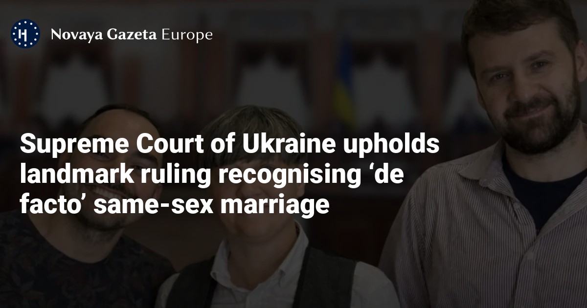 The couple had previously been recognised as a family by a Kyiv district court in June, and the Supreme Court upheld that decision in the face of an appeal against it brought by conservative movement Vsi Razom (All Together). The ruling is the first of its kind in Ukraine, where, according to the country’s 1996 constitution, marriage can only be between two members of the opposite sex.