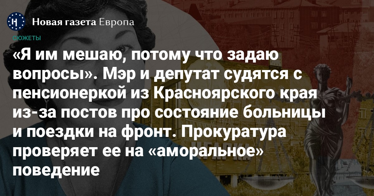 Оксана Лифанова из красноярской Игарки в групповом чате раскритиковала состояние местной больницы и работу чиновников. После этого она стала главным врагом местных властей: мэр и местный депутат подали на нее в суд. Чиновники требуют от Лифановой более полумиллиона рублей. Заодно прокуратура проверяет ее на «аморальное поведение» по доносу местного жителя, усомнившегося в том, что она может воспитывать 14-летнюю внучку.