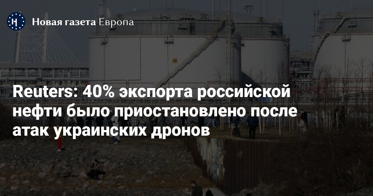 Как минимум 40% российского экспорта нефти было приостановлено после серии атак украинских дронов, пишет Reuters со ссылкой на рыночные подсчеты.
