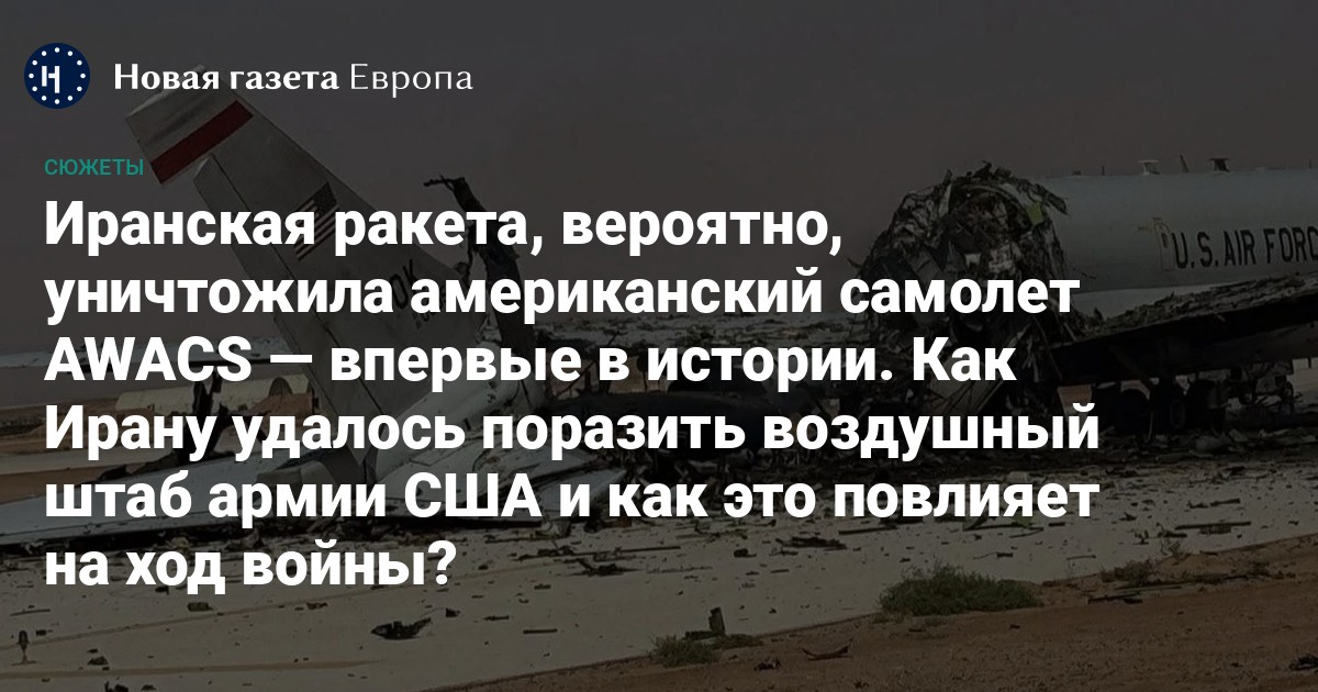 Как Ирану удалось уничтожить один из самых ценных самолетов США и как это может повлиять на ход войны на Ближнем Востоке — «Новая-Европа» выясняла вместе с экспертами.