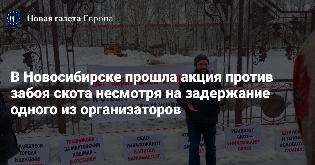 Акция «Нет — карательной “ветеринарии”!» против массового забоя скота прошла в Новосибирске у входа в сквер у театра «Глобус», сообщает Российская коммунистическая партия (интернационалистов).