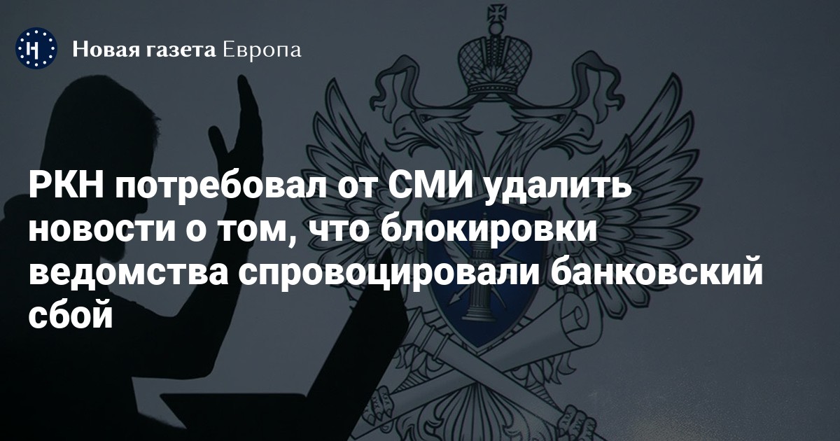 Роскомнадзор потребовал от ряда СМИ удалить новости о связи вчерашних банковских сбоев с блокировками цензурного ведомства. Первым об этом накануне сообщил юмористический паблик «Двач».
