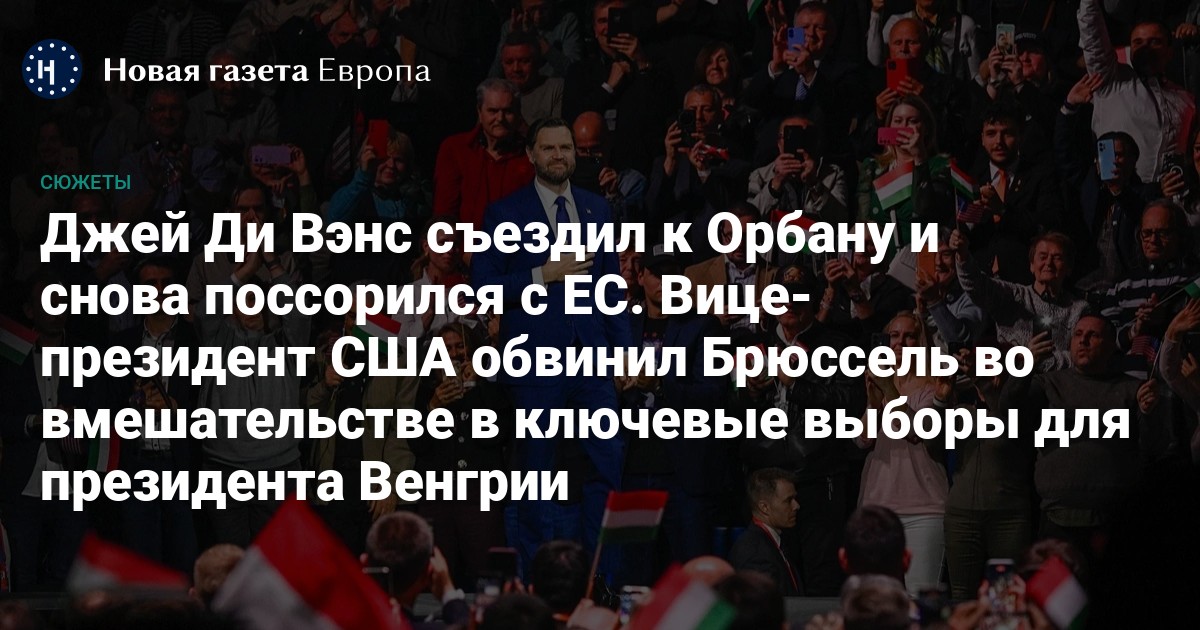 Вице-президент США Джей Ди Вэнс встретился с Виктором Орбаном в Будапеште и публично поддержал его перед предстоящими парламентскими выборами, на которых его партии «Фидес», судя по снижению рейтинга, светит поражение.