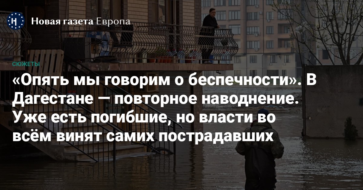Дагестан снова ушел под воду — уже во второй раз с начала марта. Синоптики прогнозируют, что в ближайшие дни будут еще дожди, которые могут привести к очередному повышению уровня рек и, соответственно, к новому потопу. В республике уже считают погибших, есть пропавшие без вести. Всё это не стало для федерального центра веским поводом, чтобы аккумулировать в Дагестане дополнительные силы для помощи людям.