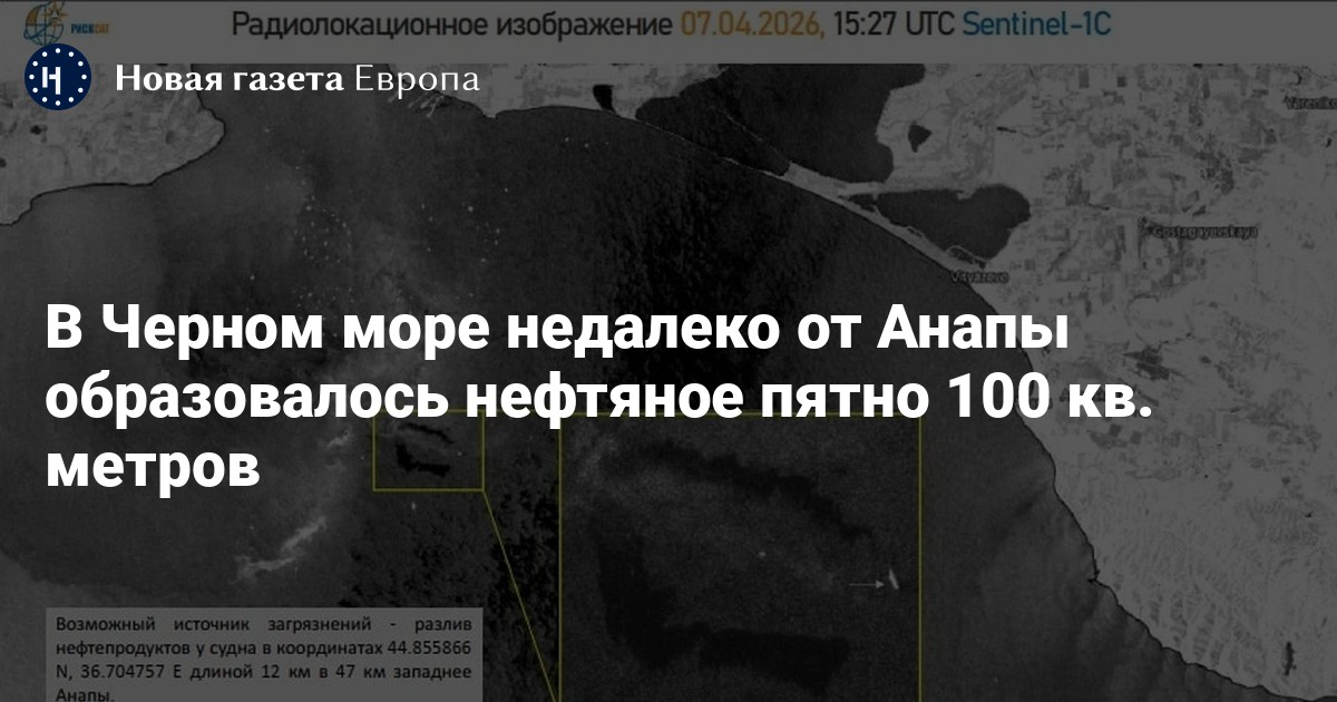 В 10-14 км к северо-западу от Анапы образовалось нефтяное пятно площадью 117 кв. км, пишет «Агентство» со ссылкой на данные спутниковых снимков и информацию команды экологов под руководством Алексея Книжникова.