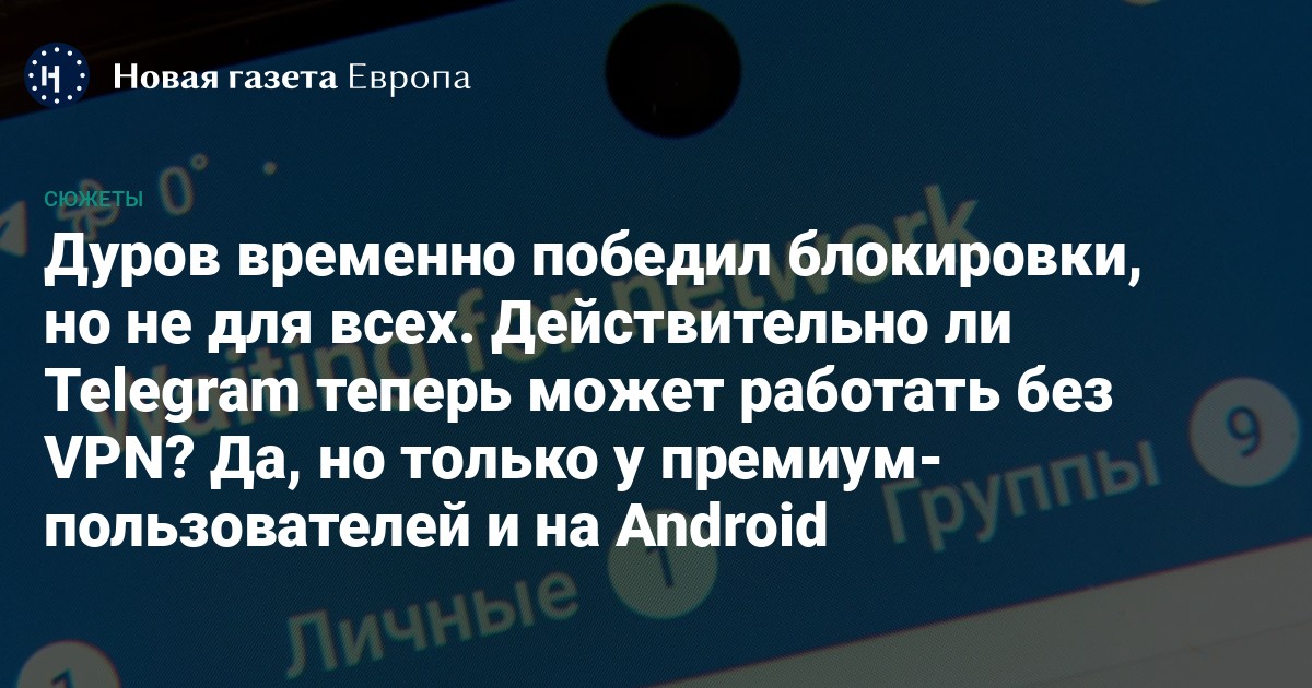 Сегодня издание «Код Дурова» обратило внимание, что заблокированный в России Telegram заработал у некоторых пользователей, но только у владельцев Android с премиум-подпиской. Это не похоже на один из сбоев, ведь сервисы для проверки блокировки мессенджера всё так же показывают его низкую доступность.