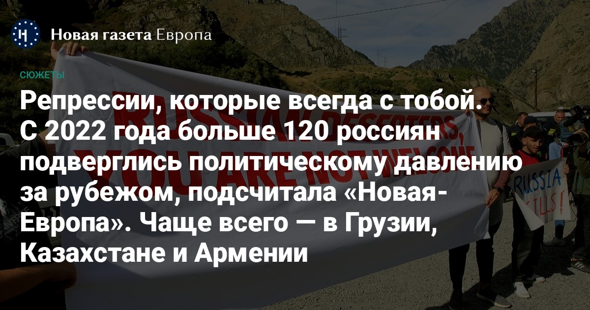 С 2022 года больше 120 россиян подверглись политическому давлению за рубежом, подсчитала «Новая-Европа». Чаще всего — в Грузии, Казахстане и Армении