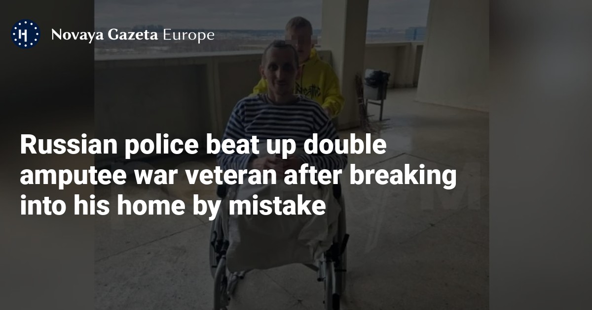 Russian police officers beat a double-amputee war veteran and forcibly restrained his wife during a mistaken house raid in the Tula region last week, according to the pro-Kremlin media outlet Regnum. Authorities later attempted to pressure the family into dropping their complaint. The victim, Sergey Zadeyev, lost both his legs fighting in Moscow’s war against Ukraine and is registered as a first-degree disabled veteran.