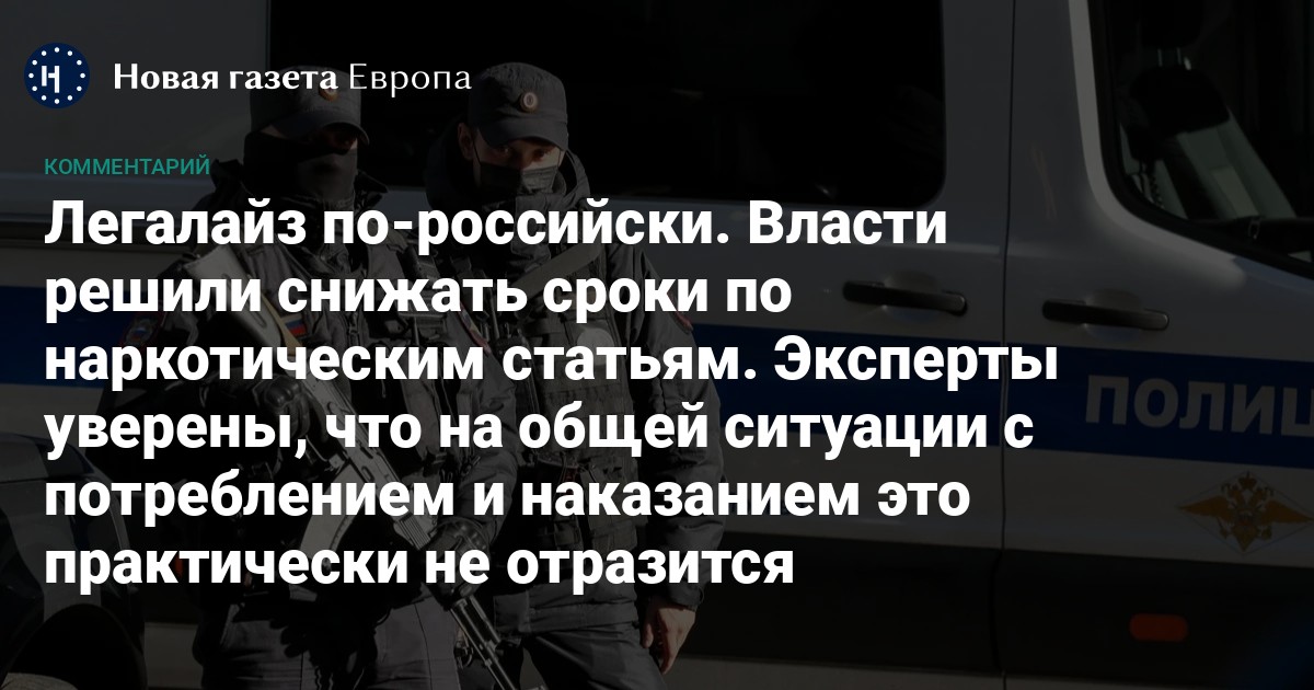 — Эти статьи традиционно использовались при работе с реальными террористами и экстремистами, [а не оппозиционерами]: многие из них употребляли наркотики, и это давало удобное основание для помещения в СИЗО и «утяжеления» доказательной базы по делу. С учетом текущей экономической ситуации значительное число людей, преимущественно молодежь, продолжает идти работать в так называемые интернет-магазины по продаже наркотиков, и МВД фактически лишается одного из ключевых рычагов давления: ранее именно высокие сроки выступали сдерживающим фактором. Снижение максимальных санкций уменьшает возможности для подобного давления со стороны сотрудников полиции и ФСИН при склонении к заключению контракта с вооруженными силами, — рассказывает он.