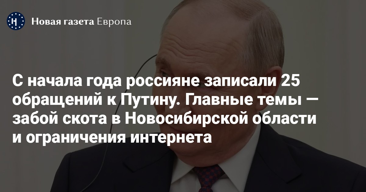 С начала 2026 года россияне записали как минимум 25 видообращений к Владимиру Путину, убедилась «Новая-Европа», изучив публикации в СМИ.
