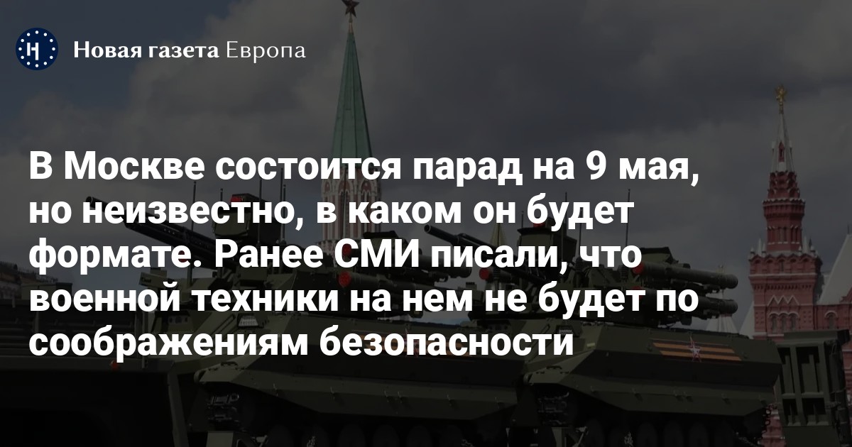 Представитель Кремля Дмитрий Песков заявил, что парад 9 мая в Москве состоится. По его словам, власти «своевременно проинформируют о формате его проведения». Будет ли на нем техника — неизвестно.
